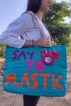 Beige Quilted Tote Bag with “”Peace”” Patchwork Carry a sense of calm and style with this beautifully designed beige quilted tote bag. Featuring the word “”Peace”” in charming blue cotton patchwork, this bag is as meaningful as it is fashionable. Spacious & Functional: Thoughtfully designed with one zippered pocket on the back for quick access to essentials. Inside, you’ll find two open pockets and one zippered pocket to keep your belongings organized.
