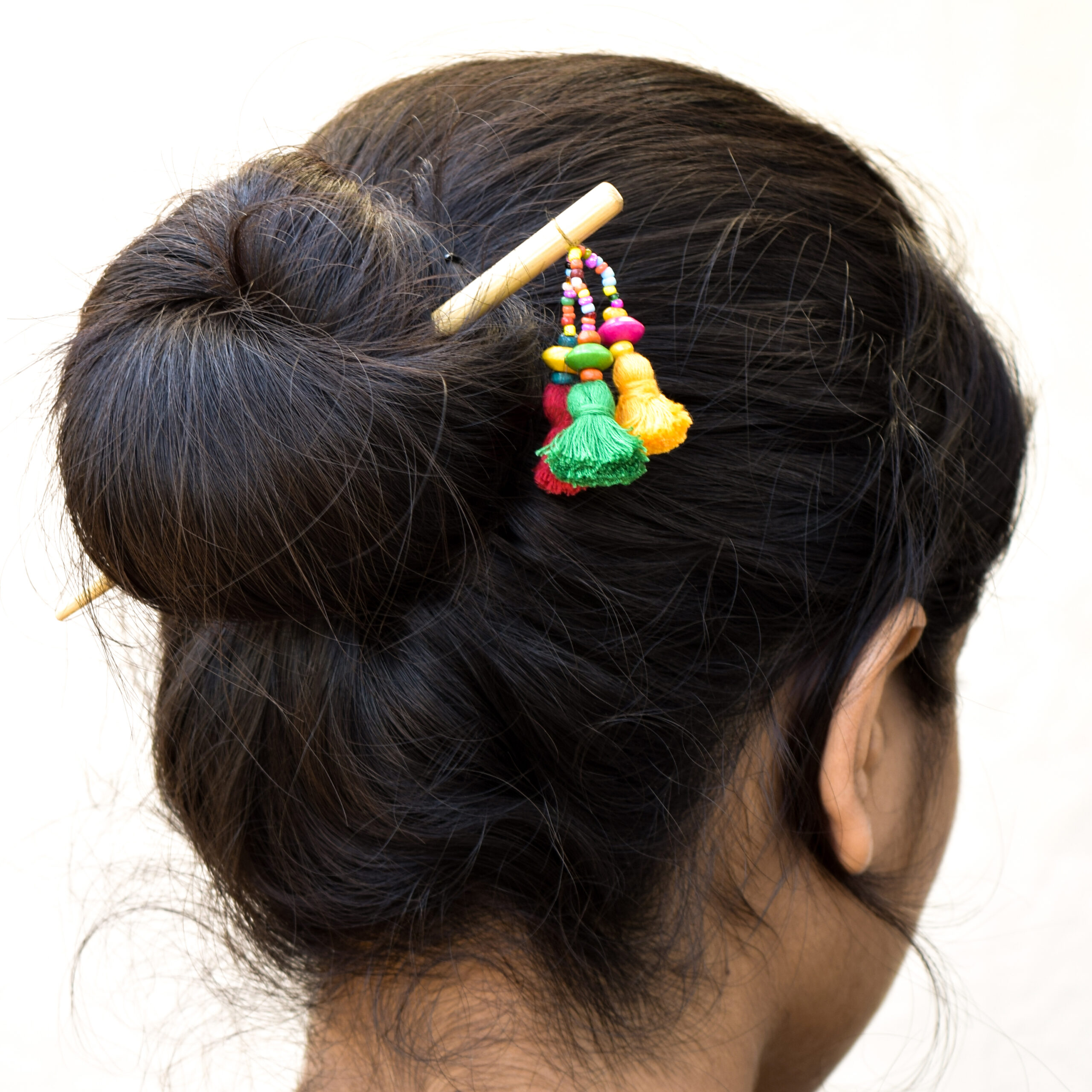 Sahaj India Women’s Bamboo Hair Stick (12 X 8 cm, Multicolor) – LA-HS-TT-BT